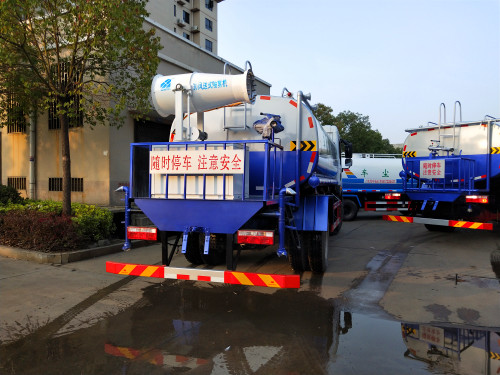 多功能抑塵車主要結(jié)構(gòu)是在行走機(jī)構(gòu)上加裝大容積水罐、高效遠(yuǎn)程霧炮系統(tǒng)、低壓沖洗灑水系統(tǒng)、綠化灑水高炮(選裝,在罐體前端)、液壓系統(tǒng)、專用的作業(yè)和行走電控系統(tǒng)等改裝而成,其性能在國(guó)內(nèi)處于領(lǐng)先水平。