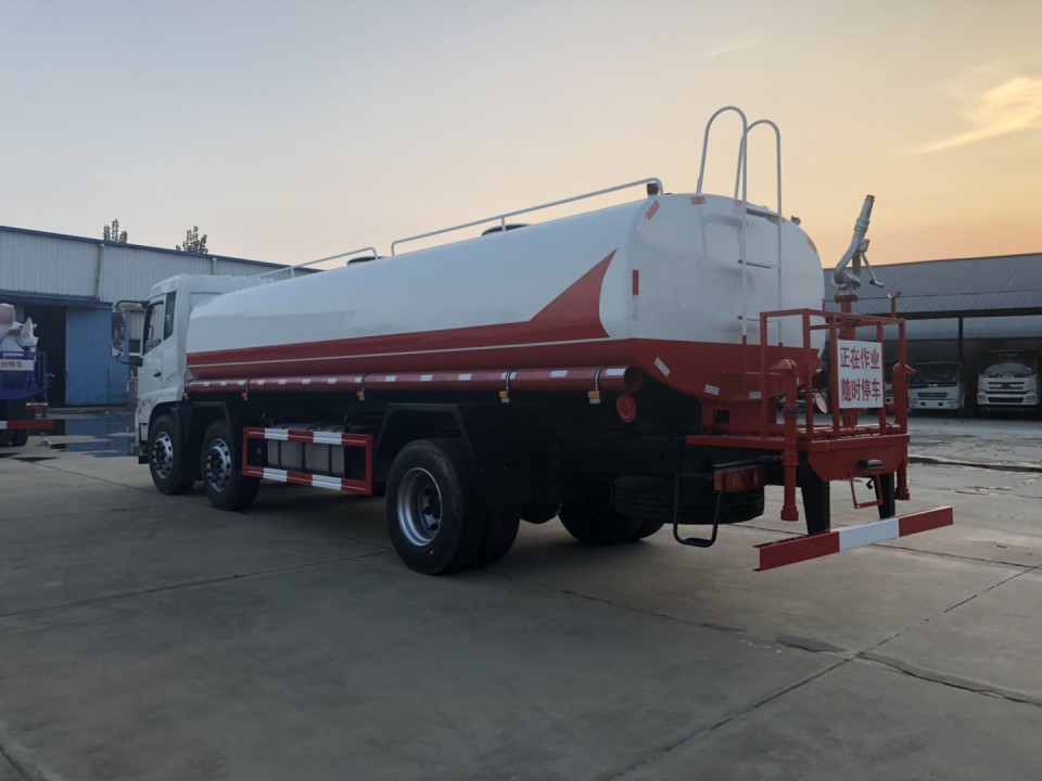 天錦18噸灑水車圖吸程≧7米,灑水寬度≧14-16米,射程≧25-30米,引水時(shí)間<5min,流量60m3/h。前沖(噴)、后灑、帶側(cè)噴(花灑)、帶后工作平臺(tái)、平臺(tái)上安裝綠化灑水車高炮(炮噴射形狀可調(diào)節(jié):直沖、大雨、中雨、毛毛雨、霧狀、可連續(xù)調(diào)節(jié),360°旋轉(zhuǎn)),配消防接口,自流閥,濾網(wǎng),帶自吸自排功能。配備大功率專用灑水車水泵,泵可自吸自排,安裝過濾網(wǎng),帶消防接口,可通過消防栓進(jìn)水,帶自流閥,隨車選裝20米綠化卷盤,可噴灑農(nóng)藥,罐體金屬漆。罐體有橢圓和方圓罐兩種,可根據(jù)用戶的要求定做 發(fā)動(dòng)機(jī)可選,東風(fēng)天錦小三軸18噸灑水車圖片-湖北程力