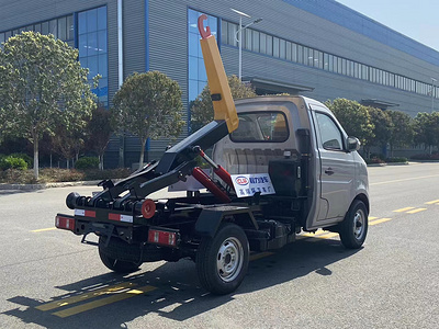 長安底盤改勾臂式垃圾車容積為2~3方,標(biāo)配邊三底四的垃圾箱一個,采用江蘇液壓油缸液壓泵,國產(chǎn)多路閥。