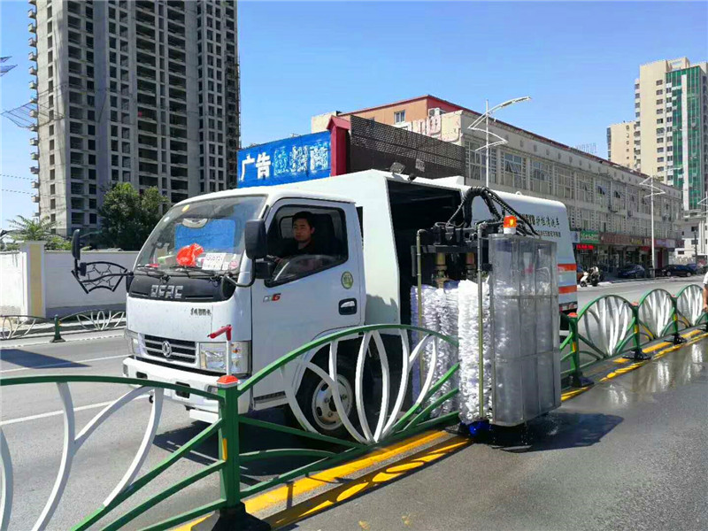 城市道路隔離護欄專用車:是采用毛刷擦洗和高壓水沖洗相結合的作業(yè)方式,進行清洗城市道路隔離護欄的,中置四根高壓噴桿,噴出水壓高達24兆帕,能輕松解決護欄上面的粘浮垃圾及灰塵泥土,四根立式滾刷(尼農條和粘連布組合材質)夾緊護欄高速轉動,將護欄上的頑固污漬、油漬輕松擦除,其中前置兩排高壓噴桿進行第一次高壓沖洗,然后四根立式滾刷進行兩次強力擦洗,最后后置兩根高壓噴桿進行二次沖洗,清洗過后護欄潔凈如新。