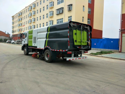 (3)無二次揚塵。采用純吸式作業(yè)方式,無灑水,采用獨特的、先進的、具有專利的高效過濾系統(tǒng),該車排出的氣體清潔度遠遠超過環(huán)保排塵濃度標準的要求