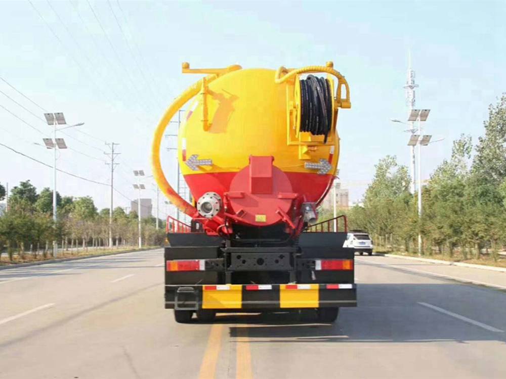 清洗裝置:配天津通潔300升高壓泵, 60米PVC雙層高壓管22通徑高壓管,10個高壓噴頭,兩個水泥蓋,頂部100的互通,水污互通用100的球閥,水罐3寸球閥安在罐體最底部.水倉污倉罐體內(nèi)噴防銹,后封頭600的液壓口,一個6寸自流,一個4寸的進料口,一個4寸的排污口,側(cè)面一個6寸的球閥偷排。后蓋加裝活動可拆式卷盤壹套,右后側(cè)一套卷盤,罐體采用8個厚鋼板制作,后蓋上帶一個600液壓口排污,300側(cè)邊自流口。
