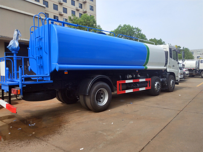 上裝參數(shù):罐體有效容積21.1立方,罐體采用武鋼的優(yōu)質(zhì)Q235碳鋼一次性錘煉成型技術(shù)制作,厚度4mm。并采用了全國獨(dú)有烤漆工藝,防腐除銹,多層底漆、面漆噴涂。罐體尾部加裝了灑水作業(yè)平臺,平臺上安裝多個出水口,能讓用戶最大程度上利用灑水功能