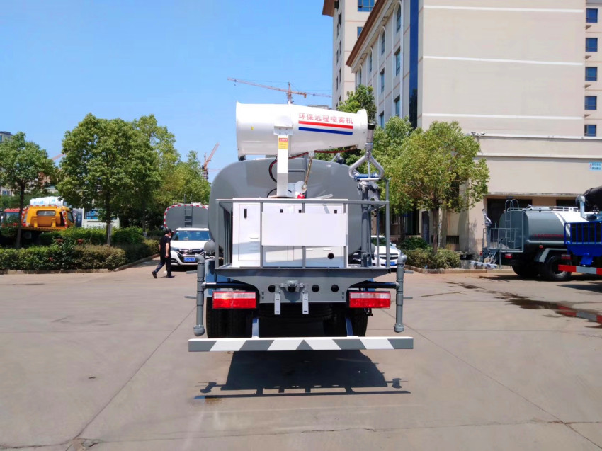 灑水車整車具有前沖、后灑、側(cè)噴(更換噴頭后變?yōu)閭?cè)花灑)、后置式工作平臺(帶踏梯,四周有安全護(hù)欄)、平臺上設(shè)置有高壓水炮(可360°旋轉(zhuǎn),水流可調(diào)成柱狀,射程≥28米;也可調(diào)成霧狀,射程≥14米,可連續(xù)噴射出:直沖狀、大雨、中雨、小雨、毛毛雨)。該車灑水寬度大于14米,配備優(yōu)質(zhì)大功率專用灑水泵(可自吸自排,垂直吸程6.5米)、取力器、雜物過濾網(wǎng)、國標(biāo)通用65型消防接口(可通過消防栓加水)、1套自流球閥系統(tǒng)、2根引水鋼絲膠管(帶陰陽快速接頭)、配鎖、水位計、高音作業(yè)喇叭,兩側(cè)及后加強(qiáng)型保險杠,防滑爬梯,膠管儲存筒。