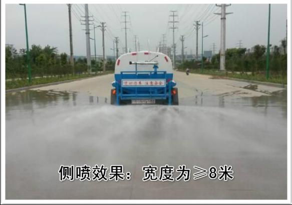 灑水車專用部分介紹:該車具有前沖(噴)、后灑、帶側(cè)噴(花灑)、帶高位花灑、帶后工作平臺(tái)、平臺(tái)上安裝專用大功率綠化灑水高炮(炮有直流狀、大雨、中雨、毛毛雨、霧狀可調(diào)節(jié),可噴灑農(nóng)藥), 垂直吸程>7米,灑水寬度>14米,射程>28米,同時(shí)可作用高壓沖洗,應(yīng)急消防,移動(dòng)泵站等用途。
