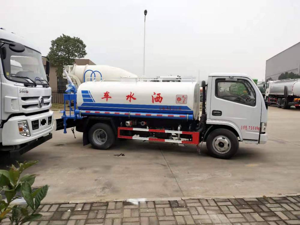 上裝配置:罐體采用4mm厚武鋼專用容積板制作,罐體容積:5立方,罐內(nèi)隔板具有防波作用,以減低汽車行駛時(shí)罐體液體的沖擊。泵進(jìn)泵出,消防栓接口,前沖、后灑、側(cè)噴、后工作平臺(tái)帶綠化水炮,垂直吸程≧7米,灑水寬度≧14-16米,射程≧20-35米,引水時(shí)間<5min,流量90m3/h。自流閥、濾網(wǎng)、帶自吸自排功能。兩根等長(zhǎng)輸水管,金屬漆,其余標(biāo)配。可加裝空調(diào)、加裝藥盤、氣動(dòng)控制閥、噴藥設(shè)備等。用戶可選裝消防大功率消防水泵、應(yīng)急時(shí)可做消防灑水車使用。