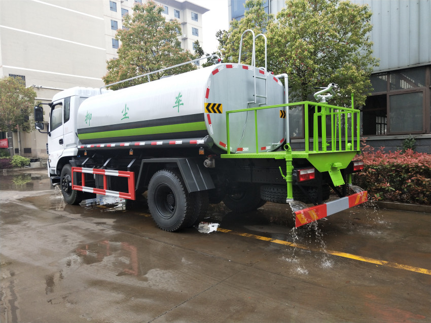 東風(fēng)御虎12噸灑水車 罐體采用武鋼優(yōu)質(zhì)碳鋼板,采用國(guó)標(biāo)5mm厚制作,罐體內(nèi)設(shè)有隔浪板,具有防波浪作用,以減低汽車行駛時(shí),對(duì)罐體的沖擊,射程可達(dá)35米,垂直吸程≥7米,灑水寬度≥14-16米,帶自吸自排功能,消防栓接口,前沖,后灑,側(cè)噴,后工作平臺(tái)帶綠化水炮,綠化灑水炮(噴射形狀可調(diào))直沖狀、大雨、中雨、毛毛雨,可連續(xù)調(diào)節(jié),自流閥,三通濾網(wǎng),大功率灑水泵,2根3米輸水管,金屬漆,其它灑水車標(biāo)配。