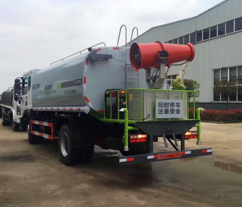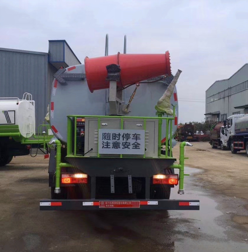 灑水車吸程≧7米,灑水寬度≧14-16米,射程≧25-40米,引水時(shí)間<5min,流量60m3/h。前沖(噴)、后灑、帶側(cè)噴(花灑)、帶后工作平臺、平臺上安裝綠化灑水高炮(炮噴射形狀可調(diào)節(jié):直沖、大雨、中雨、毛毛雨、霧狀、可連續(xù)調(diào)節(jié),360°旋轉(zhuǎn)),配消防接口,自流閥,濾網(wǎng),帶自吸自排功能。配備大功率專用灑水泵,泵可自吸自排,安裝過濾網(wǎng),帶消防接口,可通過消防栓進(jìn)水,帶自流閥,此車尾部加裝大功率農(nóng)藥噴灑炮,