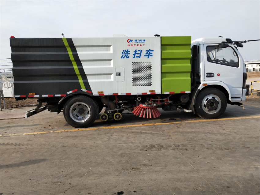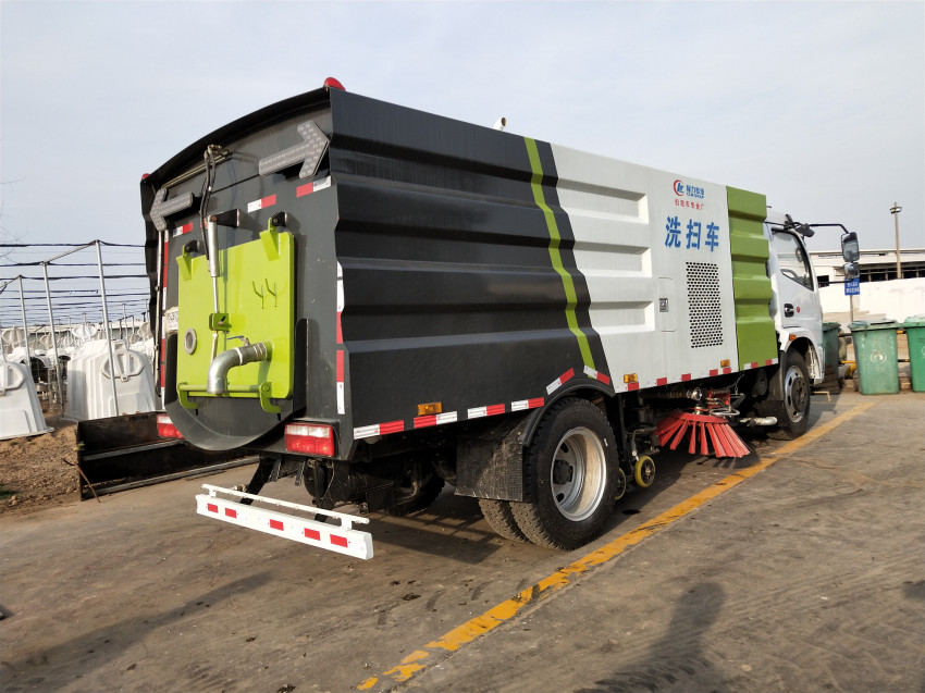 洗掃車具有路面清洗、路面清掃 路緣和路緣石立面洗刷、低壓沖洗、噴霧除塵等多功能。有“全洗掃”、 “左洗掃”、 “右洗掃”、 “全掃”、 多種作業(yè)模式可選擇。選擇“全洗掃”模式清洗廣場(chǎng)和路面,清洗效率高效果好,洗凈率達(dá)95%以上。選擇“左洗掃”或“右洗掃”模式清洗路面和路緣 。需要進(jìn)行路面清掃或路面保潔作業(yè)時(shí),可選擇掃路模式。需要噴霧除塵時(shí),可開(kāi)啟噴霧裝置,進(jìn)行噴霧除塵作業(yè)。可以像灑水車一樣對(duì)路面進(jìn)行低壓沖洗作業(yè)。