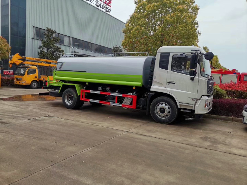 專用配置:罐體容積約12~14立方米,鋼板為4mm碳鋼Q235材質(zhì),前沖、后灑、側(cè)噴、后平臺帶綠化灑水炮,灑水炮可全方位旋轉(zhuǎn),可連續(xù)調(diào)成直沖狀、大雨、小雨、毛毛雨;前封頭帶水位計(jì),后平臺主管路帶1寸澆花接口,后爬梯,帶1個消防接頭,帶1個自流閥,1個過濾裝置。