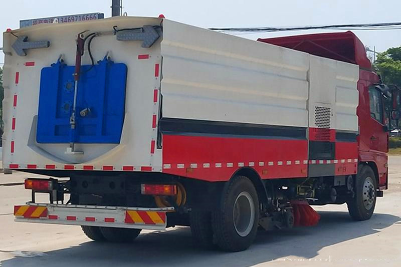 11、陜汽8噸洗掃車的垃圾箱內(nèi)帶有自潔功能,在垃圾傾倒完成后可將箱內(nèi)的殘留垃圾沖洗干凈,減輕環(huán)衛(wèi)工人的負(fù)擔(dān)。
