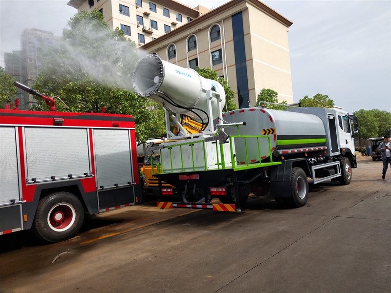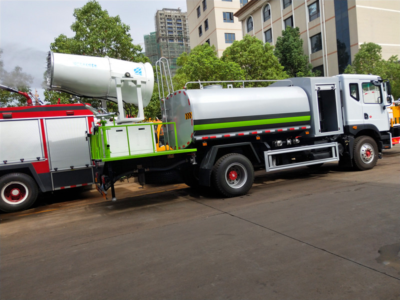 專用部分:帶前沖、后灑、側(cè)噴、后工作平臺(tái)、尾部帶綠化炮,帶自吸自排灑水泵,后工作平臺(tái)高壓水炮直沖射程25-30米(可調(diào)成:直沖狀、大雨、中雨、小雨、毛毛雨),整車帶消防接頭、自流閥。附送2根水管。加裝30型霧炮,帶8千瓦柴油發(fā)電機(jī)組,霧炮可以遙控操作。