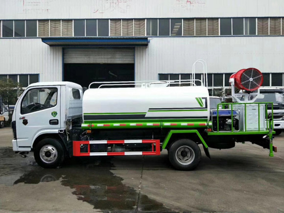 東風多利卡8-10噸東環(huán)衛(wèi)霧泡灑水車噴霧車霧炮車專用功能為:前沖后灑,側噴,罐體后帶工作平臺加護欄,平臺上安裝綠化灑水高炮,射程28米左右,可調(diào)節(jié)多種形態(tài)(大雨、中雨、霧狀),配備大功率專用灑水泵,泵可吸自排,帶自流閥,帶消防接頭,帶過濾裝置,兩根吸水管。另外該車可選裝A、后部帶弧形噴霧和LED箭頭指示燈;B、后部帶LED箭頭指示燈;C、后部帶弧形噴霧裝置。