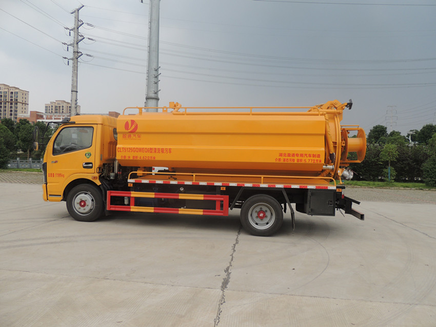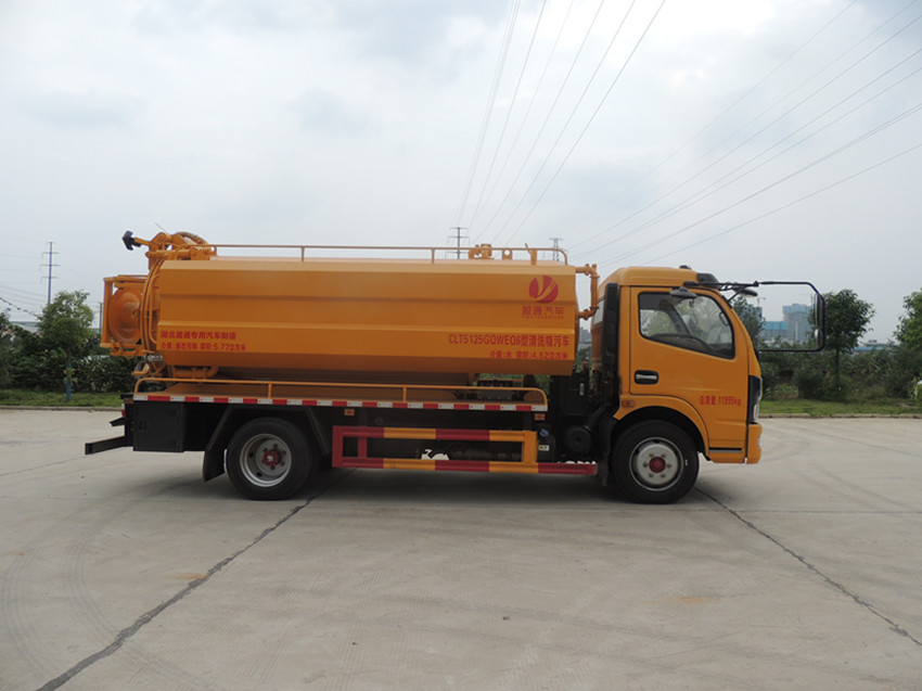 東風(fēng)清洗吸污車吸污部分:吸污罐采用6mm武鋼碳鋼制作,容積約7方,帶視污窗,洗手裝置,安裝有防溢閥,SK-12水環(huán)式真空泵(選裝油泵),帶8米4寸吸污鋼絲橡膠管,罐尾配100mm排污球閥,罐體帶液壓舉升系統(tǒng),后蓋液壓打開、關(guān)閉,帶自卸功能,可進(jìn)行加壓強(qiáng)排。罐體內(nèi)帶隔襯板,防止吸污罐體變形。