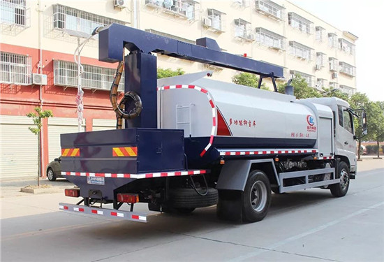 罐體為10立方圓形罐,罐體內(nèi)部做防腐,前沖、后灑、側(cè)噴、高炮,抑塵噴灑桿(帶旋轉(zhuǎn)伸縮功能)。噴灑桿離地3.5-4.5米 ,后部平臺帶8KW副發(fā)電機組,罐體內(nèi)部加兩個1.5KW電動馬達(帶攪拌功能)罐體噴漆上白下藍,平臺和噴灑桿藍色。遙控操作噴灑桿上下左右旋轉(zhuǎn),平臺較上一臺車左右加寬20CM,電控箱安裝在后部平臺。
