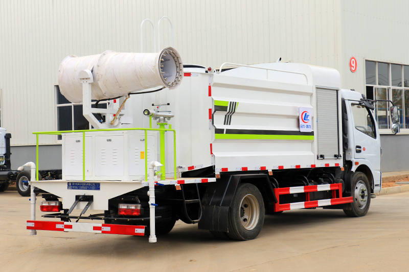 2個(gè)后灑(能均勻地將水灑在路面,一次灑水寬度14米)、2個(gè)側(cè)噴(花灑)(能均勻地將路旁綠化帶澆灌)、帶1個(gè)后工作平臺,平臺上安裝1個(gè)綠化灑水高炮(灑水炮可全方位旋轉(zhuǎn),可連續(xù)調(diào)成直沖狀、大雨、小雨、毛毛雨,霧狀可調(diào)節(jié)沖洗高大樹木),引水時(shí)間<5min,流量90m3/h。帶1個(gè)消防接頭,帶1個(gè)自流閥,1個(gè)過濾裝置、人性化爬梯及側(cè)防護(hù)欄,安裝灑水音樂喇叭。