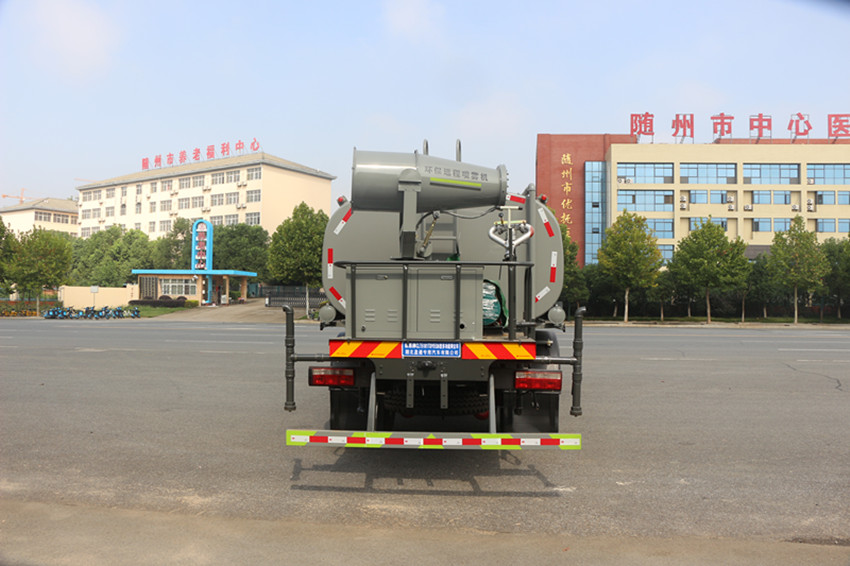 罐體容積可做12一15立方,上裝標(biāo)準(zhǔn)配置可為:前噴,后灑,后位花酒帶側(cè)噴,后置加寬工作平臺(tái)帶高炮。(根據(jù)用戶的不同需求,可以在罐體尾部工作平臺(tái)上安裝30一50米霧炮,噴藥裝置藥盤,室內(nèi)操作的大鴨嘴,本田泵,長(zhǎng)警燈等)。