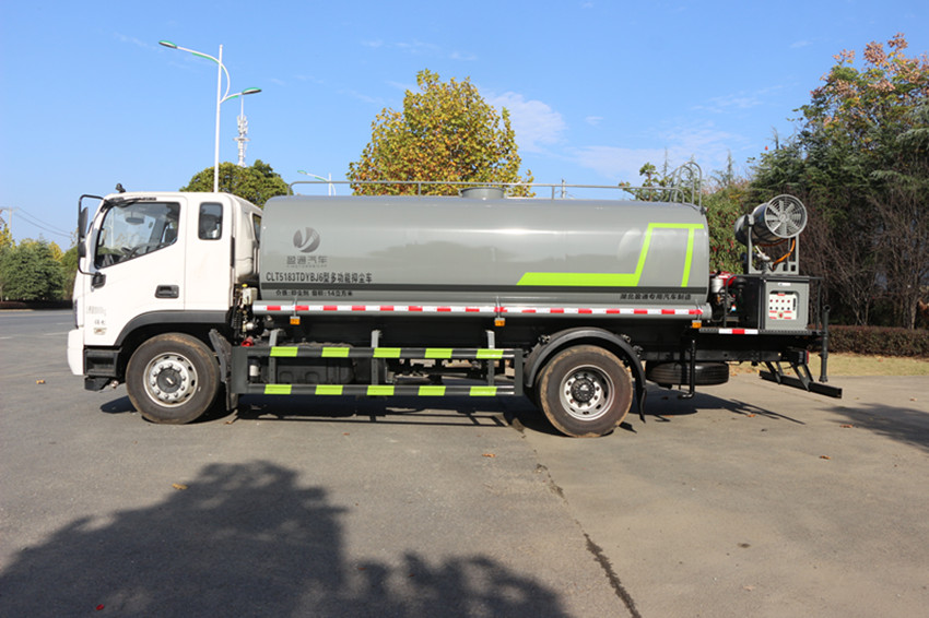 福田灑水車性能簡介:吸程≧7米,灑水寬度≧14-16米,射程≧25-40米,引水時間<5min,流量60m3/h。前沖(噴)、后灑、帶側噴(花灑)、帶后工作平臺、平臺上安裝綠化灑水高炮(炮噴射形狀可調節(jié):直沖、大雨、中雨、毛毛雨、霧狀、可連續(xù)調節(jié),360°旋轉),配消防接口,自流閥,濾網(wǎng),帶自吸自排功能。安裝30-80米霧炮,霧炮可以遙控操作,可以手動操作,按霧炮大小配多大功率發(fā)電機
