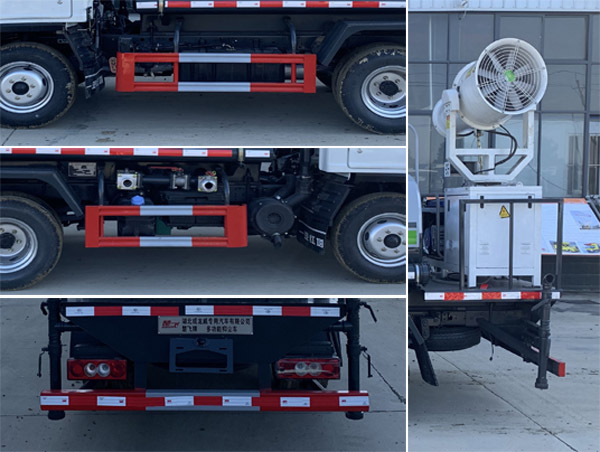 該車(chē)用途為抑塵降霾,主要裝置為水泵與風(fēng)機(jī);罐體有效容積:1.91立方米,罐體外形尺寸(mm) 為2200×1370×940;側(cè)、后防護(hù)材料為Q235,連接方式為螺栓連接,后防護(hù)斷面尺寸(mm):100×50, 后部防護(hù)離地高度(mm):350;ABS型號(hào)為CM4YL,生產(chǎn)廠(chǎng)家為廣州瑞立科密汽車(chē)電子股份有限公司. |
