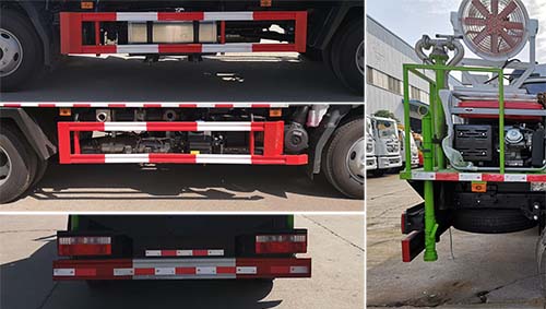 江淮牌抑塵車側(cè)防護(hù)及后下部防護(hù)均采用Q235A材質(zhì),均采用焊接連接,后下部防護(hù)尺寸:60×120(mm),