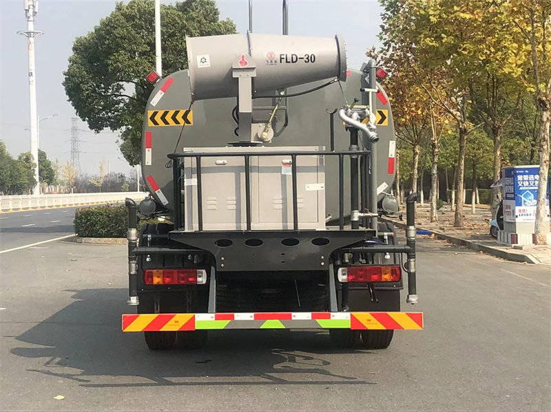 上裝配置:罐體采用4mm厚專用容積板制作,實(shí)際容積9.2立方,前沖、后灑、側(cè)噴,后工作平臺(tái)及綠化高炮,配灑水車專用水泵,泵進(jìn)泵出及消防栓接口,兩根等長(zhǎng)輸水管,金屬烤漆,后平臺(tái)選裝風(fēng)送式霧炮機(jī)組,射程30米、40米其余標(biāo)配。