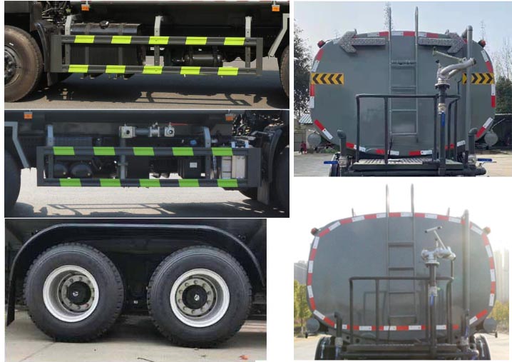該車主要用于城鄉(xiāng)園林綠化噴灑;主要裝置為罐體及噴灑裝置:罐體總?cè)莘e:14.81立方米;罐體有效容積:14.1立方米;罐體外形尺寸(長×長軸×短軸)(mm):6800×2390×1620;側(cè)、后防護材料均為:Q235碳鋼,連接方式均為:螺栓連接,后部防護截面尺寸(mm):120×50,后部防護離地高度(mm):480;ABS型號/生產(chǎn)廠家:3631010-C2000/東科克諾爾商用車制動系統(tǒng)(十堰)有限公司,ABS 8/東科克諾爾商用車制動系統(tǒng)(十堰)有限公司,4460046450/威伯科汽車控制系統(tǒng)(中國)有限公司.采用4350+1350(mm)軸距.隨底盤選裝限速裝置,限速89km/h.隨底盤選裝駕駛室,選裝噴霧裝置樣式。選裝蓄電池及儲氣筒位置.選裝擋泥板樣式,選裝后部樣式,選裝弧形噴灑裝置,選裝箭頭燈裝置,選裝水炮支架位置,選裝自動球閥安裝位置。