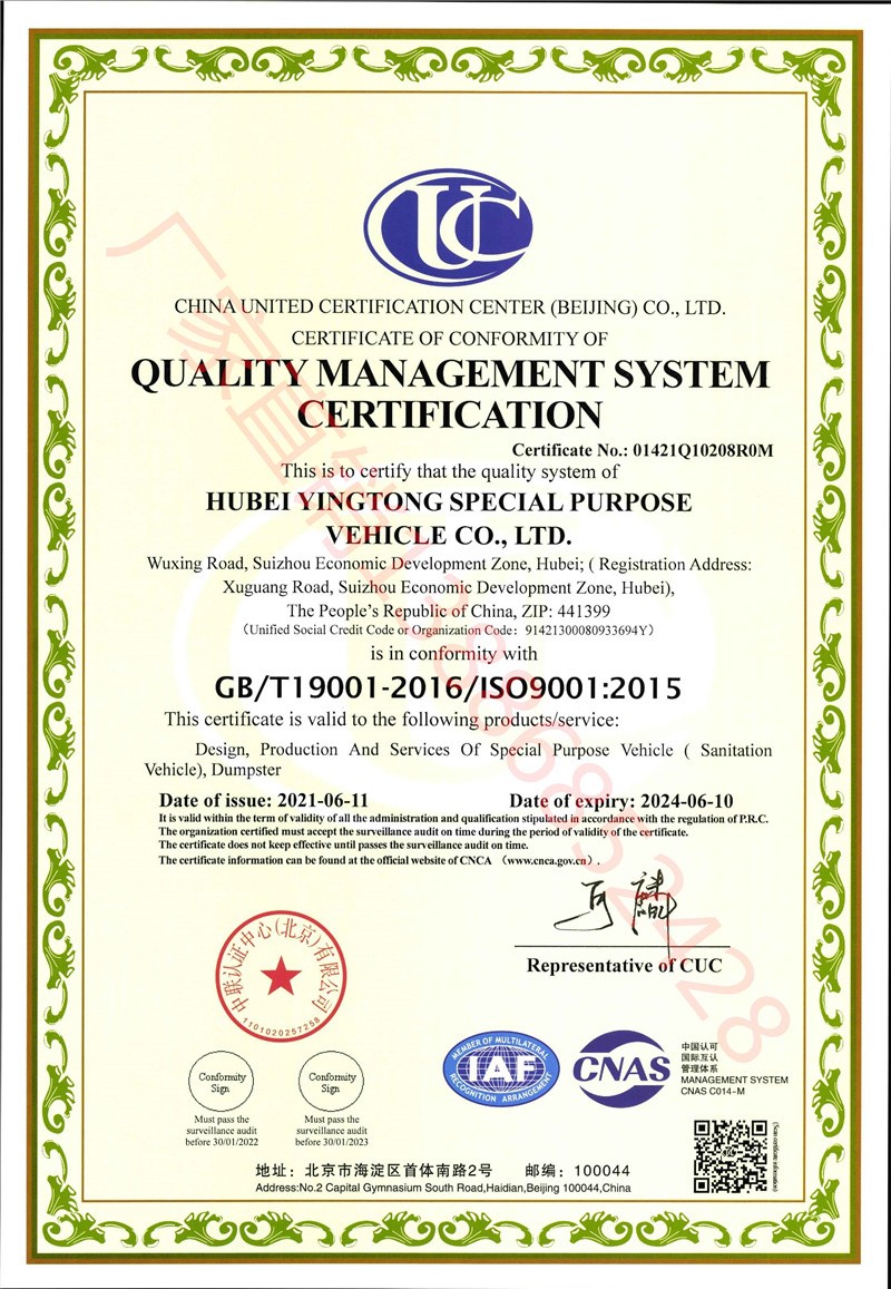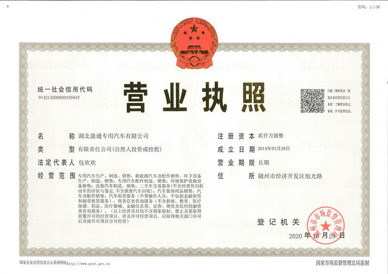 湖北盈通灑水車廠家公司資質(zhì)