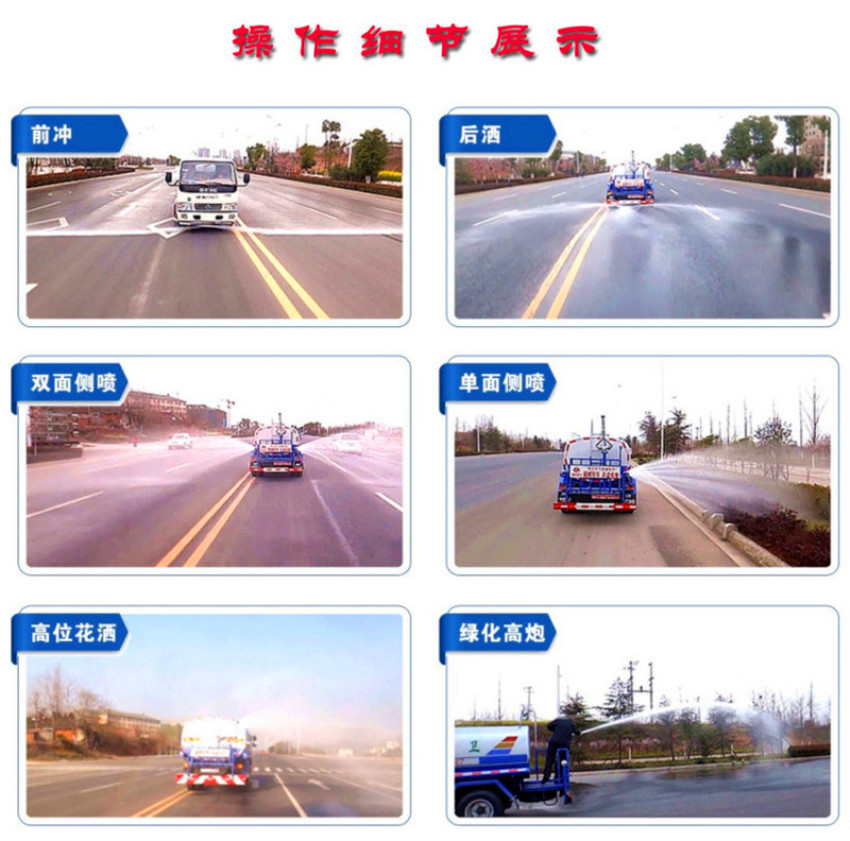 吸程≧7米,灑水寬度≧14-16米,射程≧25-40米,引水時間<5min,流量60m3/h。前沖(噴)、后灑、帶側噴(花灑)、帶后工作平臺、平臺上安裝綠化灑水高炮(炮噴射形狀可調節(jié):直沖、大雨、中雨、毛毛雨、霧狀、可連續(xù)調節(jié),360°旋轉),配消防接口,自流閥,濾網(wǎng),帶自吸自排功能。配備大功率專用灑水泵,泵可自吸自排,安裝過濾網(wǎng),帶消防接口,可通過消防栓進水,帶自流閥,隨車選裝20米綠化卷盤,可噴灑農(nóng)藥,罐體金屬漆。罐體有橢圓和方圓罐兩種,可根據(jù)用戶的要求定做。
