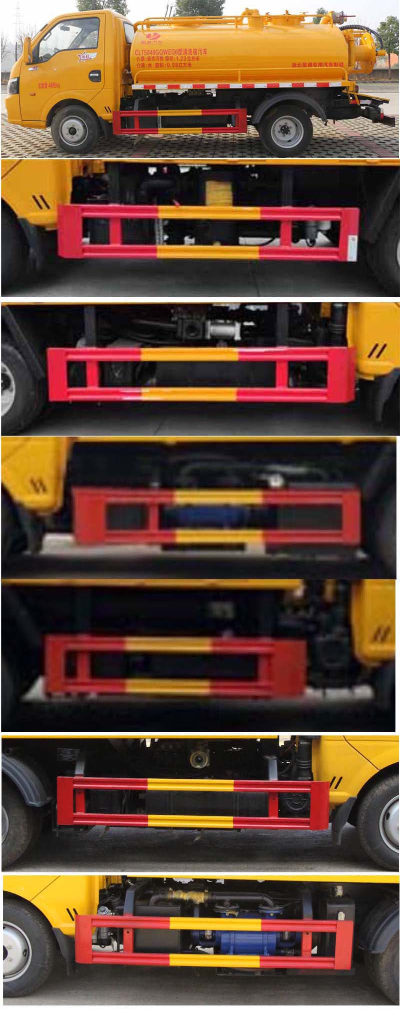 備注 | 該車(chē)用于下水道排污及疏通,專用裝置:罐體及清洗吸污裝置;罐體外形尺寸(長(zhǎng)×長(zhǎng)軸×短軸)(mm):2800×1550×1000,罐體前段為清水罐(長(zhǎng)1590mm,其中前端下部1100mm用于安裝高壓泵);后段為污水罐(長(zhǎng)1210mm);污水罐總?cè)萘?1.29立方米,污水罐有效容積:1.23立方米,介質(zhì):液態(tài)污物,密度800千克/立方米;清水罐總?cè)萘?1.03立方米,清水罐有效容積:0.98立方米,介質(zhì):水,密度1000千克/立方米,清水罐和污水罐為獨(dú)立罐體,清洗功能時(shí)用清水罐,吸污功能時(shí)用污水罐,污水罐和清水罐不可同時(shí)滿載,兩罐不能同時(shí)滿載使用;ABS型號(hào)/廠家:APG3550500A/浙江亞太機(jī)電股份有限公司;選裝ABS廠家及型號(hào):襄陽(yáng)東風(fēng)隆誠(chéng)機(jī)械有限責(zé)任公司/ABS/ASR-12V-4S/4M.側(cè)、后防護(hù)材料均為:Q235碳鋼,連接方式均為:螺栓連接,后部防護(hù)截面尺寸(mm):100×50,后部防護(hù)離地高度(mm):360.僅采用底盤(pán)2800mm軸距改裝.選裝油箱及電瓶位置。隨底盤(pán)選裝駕駛室。 | ||