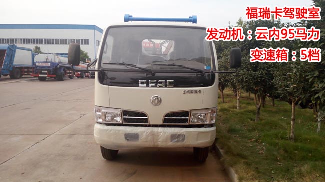 東風福瑞卡擺臂式垃圾車,福瑞卡駕駛室外形,云內(nèi)95馬力發(fā)動機,5檔變速箱,前橋1.8噸,后橋3.5噸,軸距3.3米,7.00-16輪胎,單層大梁,氣剎、ABS。