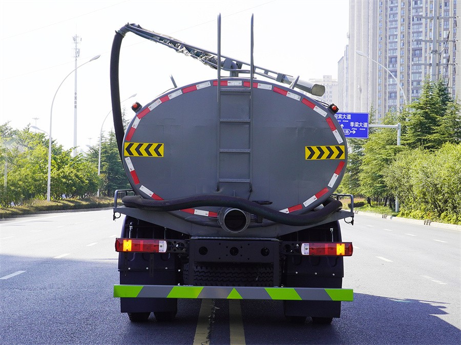 主要專用裝置:罐體及吸糞裝置總成,主要用于抽排運污水、糞便、泥漿等液態(tài)污物;罐體總容量:12.34立方米;罐體有效容積:11.73立方米;罐體外形尺寸(長×長軸×短軸)(mm):5200×2350×1500,4400×2350×1600;側、后防護材料均為:Q235碳鋼,連接方式均為:螺栓連接,后部防護截面尺寸(mm):120×50,后部防護離地高度(mm):470;ABS系統(tǒng)型號:ABS-VI.E;生產企業(yè):廣州瑞立科密汽車電子股份有限公司.ABS系統(tǒng)型號:ABS-E;生產企業(yè):威伯科汽車控制系統(tǒng)(中國)有限公司,ABS系統(tǒng)型號:3550D-1010;生產企業(yè):東科克諾爾商用車制動系統(tǒng)(十堰)有限公司.采用4500,3950mm軸距.選裝側部及后部出口樣式;隨底盤選裝限速裝置,限速90km/h.隨底盤選裝駕駛室,選裝尿素罐位置,選裝電瓶位置.選裝罐體頂部防溢閥裝置樣式.