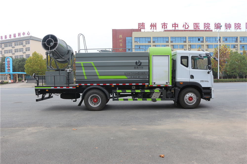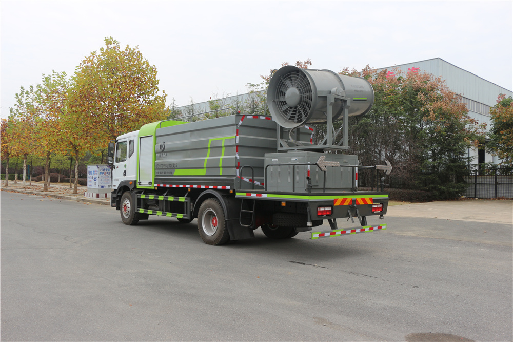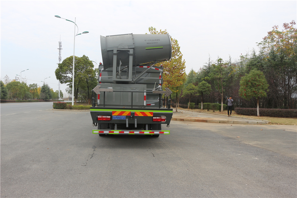 3、后平臺可加裝50米、60米、80米、100米全自動柴油霧炮機(jī)組;可噴灑農(nóng)藥,防役消毒,工地噴霧,拆遷降塵多功能使用。