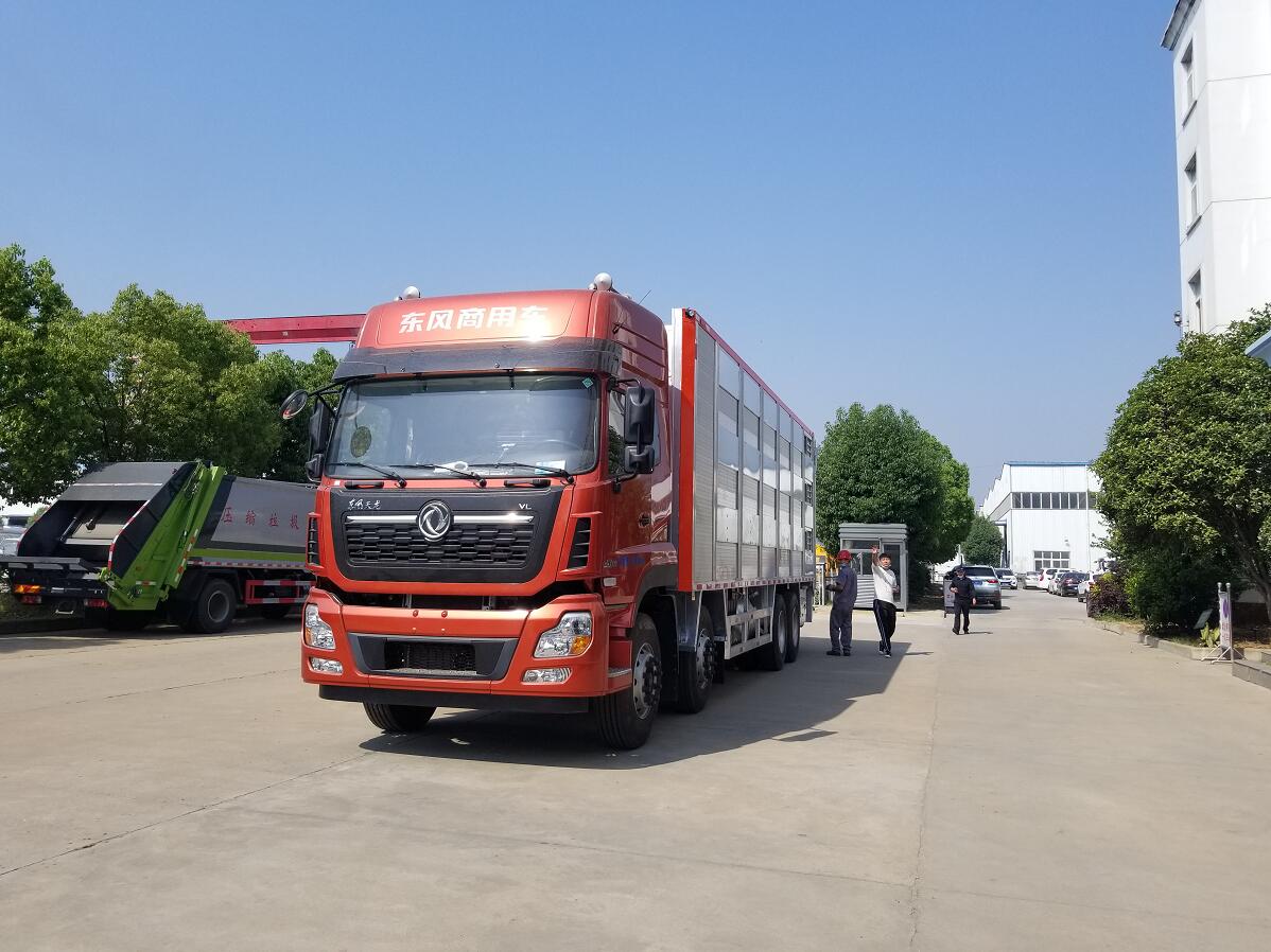 東風天龍前四后八全鋁合金運輸車,又稱鋁合金禽畜運輸車,可做三層或四層,品質(zhì)更佳,車身結(jié)構(gòu)采用鋁合金打造,不銹鋼噴頭和飲水頭,相比鋼制車體,重量減輕20%-30%,可以裝載更多的畜禽,空車行駛節(jié)約燃料,低維保費用,不生銹,生命周期無線延長,無需漆面保護,清潔簡單便捷,操作簡易,車廂升降平臺由全液壓控制,遙控操作更加簡便,自動恒溫系統(tǒng),車廂設(shè)計合理方便控制家禽上下車,遙控升降車,動物福利,更大的 內(nèi)部空間,家禽在車廂內(nèi)更感舒適,溫度控制系統(tǒng),沖淋飲水系統(tǒng),遙控側(cè)面通風系統(tǒng),可開合側(cè)窗系統(tǒng),強制通風系統(tǒng)。