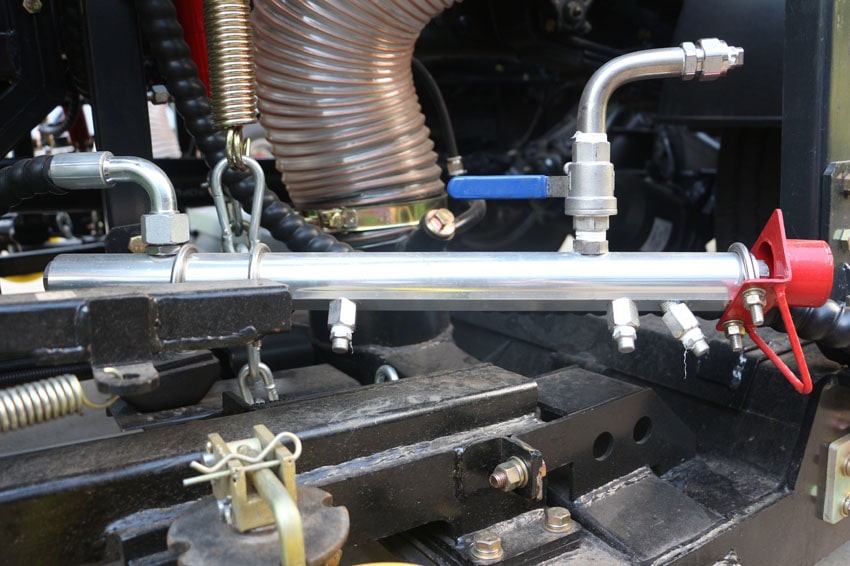 九、東風(fēng)天錦洗掃車的污水箱內(nèi)采用大平面斜坡結(jié)構(gòu),最大卸料角度可達(dá)50度,更易于傾倒垃圾。污水箱內(nèi)設(shè)置了防溢滿報(bào)警裝置和高壓噴淋清洗裝置,防溢滿報(bào)警裝置可防止污水作業(yè)時(shí)從吸管溢出,造成二次污染;高壓噴淋清洗裝置在傾倒垃圾后可對(duì)污水箱進(jìn)行自動(dòng)清洗,大大減輕了操作人員的勞動(dòng)強(qiáng)度。