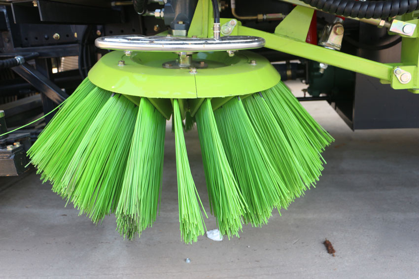 二、采用“中置兩立掃+中置寬吸嘴(內(nèi)置高壓水噴桿)+左右高壓側(cè)噴桿”的結(jié)構(gòu)。