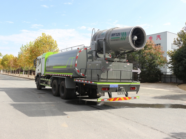 東風(fēng)大型灑水車(chē)-抑塵車(chē)上裝配置: 1、罐體約為 17 方,可加裝 60-120 型霧炮 2、邊燈帶電,罐體尾部上方標(biāo)配 2 個(gè)紅色示寬燈, 3、標(biāo)配前噴為鴨嘴直沖,標(biāo)配后沖,用戶(hù)可根據(jù)自己的需求,來(lái)調(diào) 整對(duì)沖位置。