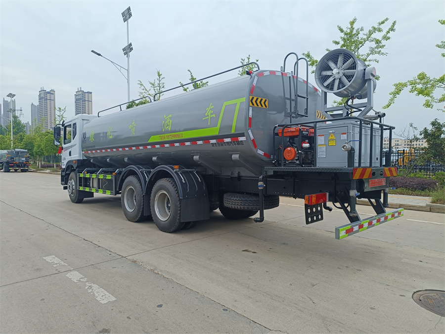 東風(fēng)新款22噸霧炮灑水車(chē)產(chǎn)品標(biāo)配前噴(鴨嘴)、后沖、后灑、側(cè)噴、后置式工作 平臺(tái),平臺(tái)上配置綠化水炮(可 360 °旋轉(zhuǎn),既可以調(diào)成柱狀,也可 以調(diào)成霧狀,更可以調(diào)成直沖狀、大雨、中雨、小雨、毛毛雨),配 備優(yōu)質(zhì)大功率專(zhuān)用灑水泵(可自吸自排,可從河里或池塘抽水到罐體), 取力器,雜物過(guò)濾網(wǎng),消防接口, 自流球閥系統(tǒng)、取力器、球閥、濾網(wǎng) 均為國(guó)家標(biāo)準(zhǔn)產(chǎn)品,主管道加粗,法蘭墊、法蘭盤(pán)加厚,大通徑球閥。 整體具備性能優(yōu)良安全可靠、效率高、流量大、維修方便等特點(diǎn)。