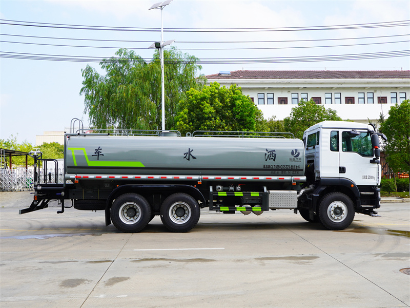 重汽汕德卡18噸灑水車產(chǎn)品標(biāo)配前噴(鴨嘴)、后沖、后灑、側(cè)噴、后置式工作 平臺,平臺上配置綠化水炮(可 360°旋轉(zhuǎn),既可以調(diào)成柱狀,也可 以調(diào)成霧狀,更可以調(diào)成直沖狀、大雨、中雨、小雨、毛毛雨),配 備優(yōu)質(zhì)大功率專用灑水泵(可自吸自排,可從河里或池塘抽水到罐體), 取力器,雜物過濾網(wǎng),消防接口,自流球閥系統(tǒng)、取力器、球閥、濾網(wǎng) 均為國家標(biāo)準(zhǔn)產(chǎn)品,主管道加粗,法蘭墊、法蘭盤加厚,大通徑球閥。 整體具備性能優(yōu)良安全可靠、效率高、流量大、維修方便等特點。