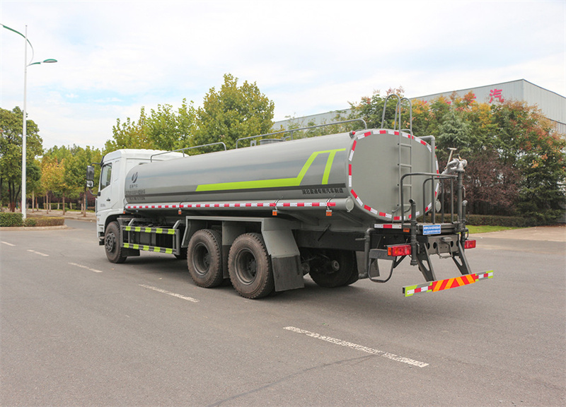 東風20噸灑水車標配前噴(鴨嘴)、后 對沖、后灑、側(cè)噴、后置式工作平臺,平臺上配置綠化水炮(可 360°旋轉(zhuǎn),既 可以調(diào)成柱狀,也可以調(diào)成霧狀),配備優(yōu)質(zhì)大功率專用灑水泵(可自吸自排, 可從河里或池塘抽水到罐體),取力器,雜物過濾網(wǎng),消防接口,自流球閥系統(tǒng)、 取力器、球閥、濾網(wǎng)均為國家標準產(chǎn)品,主管道加粗,法蘭墊、法蘭盤加厚, 大通徑球閥。整體具備性能優(yōu)良安全可靠、效率高、流量大、維修方便等特點
