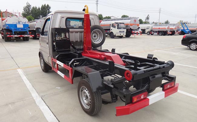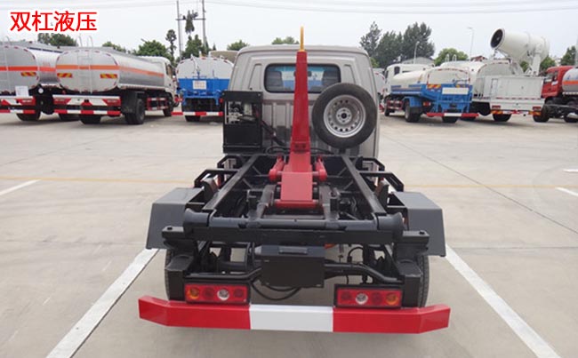 配套2~3立方米勾臂垃圾箱,高強(qiáng)度主勾臂,雙杠液壓,采用國產(chǎn)油泵、多路閥、液壓油缸、車身顏色根據(jù)客戶要求更改,尾部帶鎖緊裝置、滾輪。