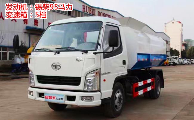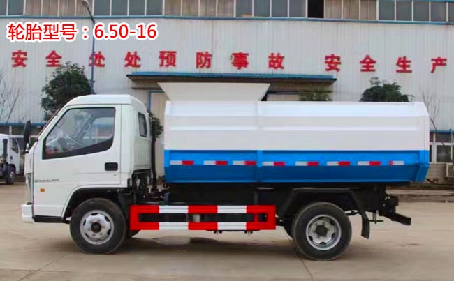 容積3~4立方米,密封式箱體結(jié)構(gòu),頂部前端有進(jìn)料箱蓋,箱體尾部有后開門,手動(dòng)機(jī)械鎖緊,掛桶裝置位于箱體右側(cè),采用國產(chǎn)液壓系統(tǒng)、多路閥、油缸、高壓軟管、液壓油箱、濾油器、通過這些組合實(shí)現(xiàn)專用功能。