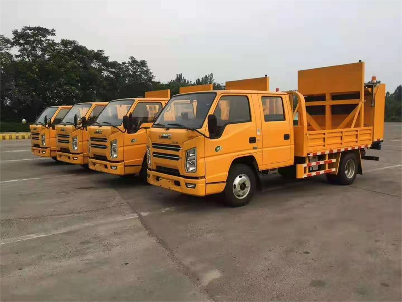 上裝配置:防撞緩沖車尾部設置防撞緩沖塊,防撞緩沖塊采用液壓升降裝置,還配備車載一體化的電子屏、電子箭頭標志牌、頻閃燈及爆閃燈多種警示燈,能夠為后方車輛提供警示和指示方向。箭頭指示標志可對左、右及禁止通行進行導向指示,對道路車輛提供主動安全引導和安全警示,最大限度降低施工對交通流量的影響并確保安全。尾部升降和燈具采用遙控控制,可在車輛附近安全控制防撞緩沖塊的升降和警示燈的開關。