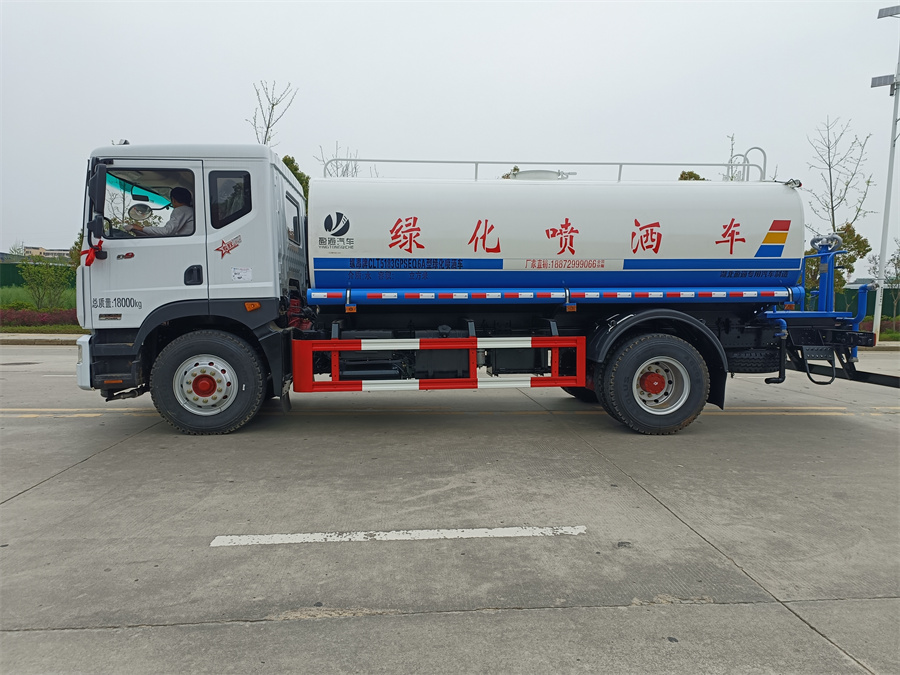 灑水車產(chǎn)品標(biāo)配前噴(鴨嘴)、后沖、后灑、側(cè)噴、后置式工作 平臺,平臺上配置綠化水炮(可 360°旋轉(zhuǎn),既可以調(diào)成柱狀,也可 以調(diào)成霧狀,更可以調(diào)成直沖狀、大雨、中雨、小雨、毛毛雨),配 備優(yōu)質(zhì)大功率專用灑水泵(可自吸自排,可從河里或池塘抽水到罐體), 取力器,雜物過濾網(wǎng),消防接口,自流球閥系統(tǒng)、取力器、球閥、濾網(wǎng) 均為國家標(biāo)準(zhǔn)產(chǎn)品,主管道加粗,法蘭墊、法蘭盤加厚,大通徑球閥。 整體具備性能優(yōu)良安全可靠、效率高、流量大、維修方便等特點(diǎn)。
