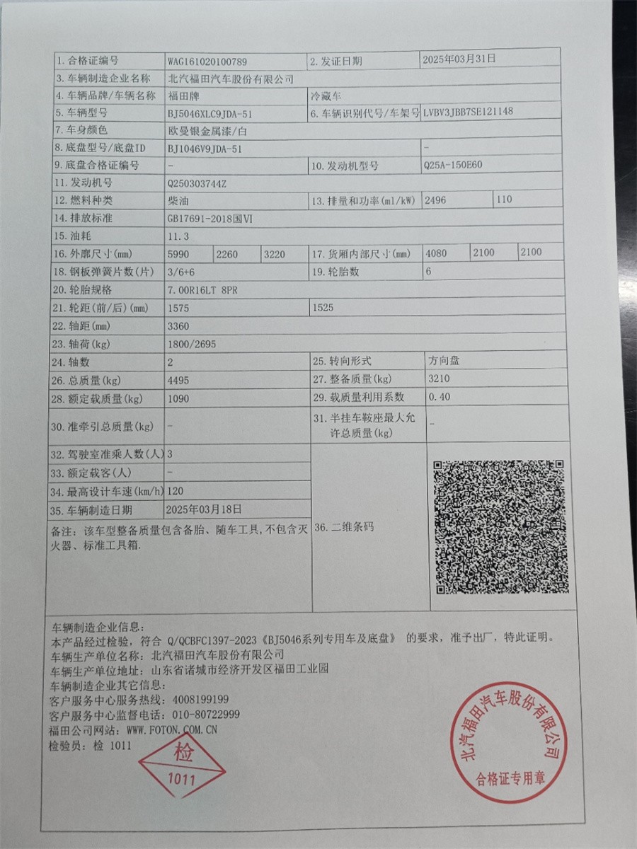 福田領航M5-全柴150馬力冷藏車