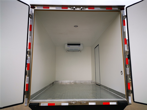 國(guó)六慶鈴M100藍(lán)牌冷藏車廂體配置為:采用斷橋隔熱工藝,整體框架結(jié)構(gòu)制作,廂體內(nèi)、外壁材料為玻璃鋼板,采用高密度保溫層,廂板內(nèi)帶有骨架,廂體厚度80mm,門框,門飾件、包角全部使用不銹鋼材質(zhì)。最新款鋁合金包邊型材,廂體內(nèi)采用LED照明燈及廂體示寬燈;門框密封條為橡膠材質(zhì),后門梁帶加厚防撞塊,加厚型不銹鋼鉸鏈及鎖件。車體副梁采用510L高強(qiáng)度鋼制作,底板為鋁花紋板(標(biāo)配塑鋼花紋板,可選鋁花紋板,不銹鋼板),車廂后門帶一個(gè)上車扶手,其余標(biāo)配;