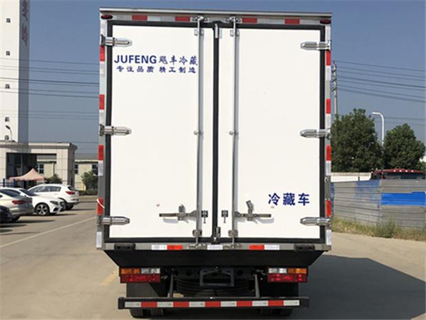 陜汽德龍4米2冷藏車(chē)廂體配置為:采用斷橋隔熱工藝,整體框架結(jié)構(gòu)制作,廂體內(nèi)、外壁材料為玻璃鋼板,采用高密度保溫層,廂板內(nèi)帶有骨架,廂體厚度80mm,門(mén)框,門(mén)飾件、包角全部使用不銹鋼材質(zhì)。最新款鋁合金包邊型材,廂體內(nèi)采用LED照明燈及廂體示寬燈;門(mén)框密封條為橡膠材質(zhì),后門(mén)梁帶加厚防撞塊,加厚型不銹鋼鉸鏈及鎖件。車(chē)體副梁采用510L高強(qiáng)度鋼制作,底板為鋁花紋板,車(chē)廂后門(mén)帶一個(gè)上車(chē)扶手,其余標(biāo)配;