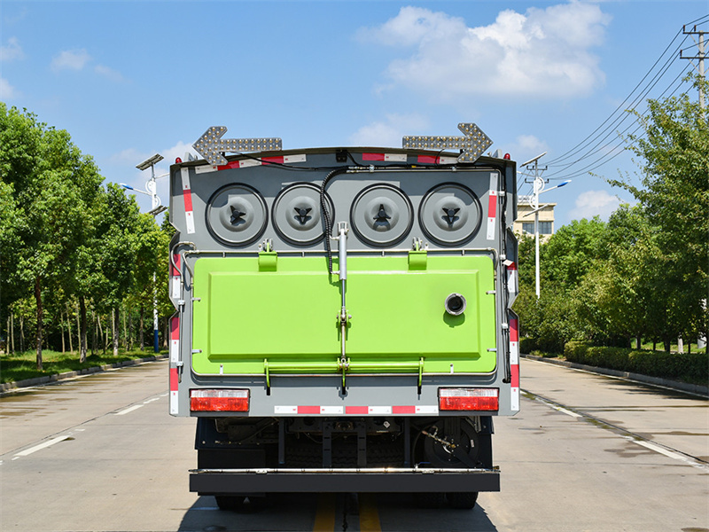 8. 尾部加有噴桿,通過(guò)電磁隔膜泵驅(qū)動(dòng)噴水路面抑塵。箱體上裝:優(yōu)質(zhì)碳銹鋼垃圾箱,3mm 邊板,4mm 底板,用于儲(chǔ)存垃圾,底板整體 折邊無(wú)縫焊接,杜絕了泄漏風(fēng)險(xiǎn)。簡(jiǎn)潔美觀、抗變形性能強(qiáng)、結(jié)構(gòu)可靠性好,同時(shí)有 效增加實(shí)際裝填容積,超過(guò)同類產(chǎn)品,不易變形、耐磨損、耐腐蝕性強(qiáng)。 自卸:液壓缸舉升,垃圾箱自卸。 副發(fā)動(dòng)機(jī):副發(fā)動(dòng)機(jī)為風(fēng)機(jī)運(yùn)轉(zhuǎn)提供動(dòng)力。風(fēng)機(jī):副發(fā)動(dòng)機(jī)和風(fēng)機(jī)是清掃車的兩大核心部件、副發(fā)動(dòng)機(jī)為風(fēng)機(jī)運(yùn)轉(zhuǎn)提供動(dòng)力、使 得路面垃圾被吸入箱體內(nèi)部存放,從而實(shí)現(xiàn)路面清潔作業(yè)。風(fēng)機(jī)采用大功率耐磨離心 式免維護(hù)風(fēng)機(jī),無(wú)噪音,效率高風(fēng)量大,使用壽命長(zhǎng)。 自動(dòng)離合器:減少風(fēng)機(jī)啟動(dòng)和停止時(shí)對(duì)發(fā)動(dòng)機(jī)的沖擊。離合器在使用過(guò)程中具有高度 耐磨、使用壽命長(zhǎng)、低噪音、低油耗量和節(jié)省成本的優(yōu)點(diǎn)。 吸盤:吸盤內(nèi)置滾掃,有效清掃路面垃圾。 濾芯:豎直濾筒,方便清理、拆卸。 電磁閥:海普瑞斯電磁閥組是車輛液壓系統(tǒng)的核心部件,控制整車液壓驅(qū)動(dòng),雙向操 作按鈕,包括掃盤升降、吸盤升降、垃圾箱舉升、后門開(kāi)閉等一系列機(jī)械操作,隨車 配備的有電磁閥控制盒罩,有效避免灰塵及垃圾物進(jìn)入盒內(nèi)。 側(cè)邊刷:增加作業(yè)寬度,并有效將垃圾掃入吸盤位置。 影像系統(tǒng):車體后方裝有監(jiān)視探頭,實(shí)時(shí)監(jiān)控作業(yè)情況并顯示在駕駛室內(nèi)顯示屏上, 最大限度的保證清吸效果。控制開(kāi)關(guān):集成疊加設(shè)計(jì),PLC 駕駛室電液集中控制,方便操作。 電子隔膜泵:控制尾部噴水桿,噴水抑塵。 應(yīng)急系統(tǒng):可通過(guò)手動(dòng)應(yīng)急液壓泵來(lái)控制全車液壓系統(tǒng)。 尾部噴水:作業(yè)完成后,尾部抑塵。