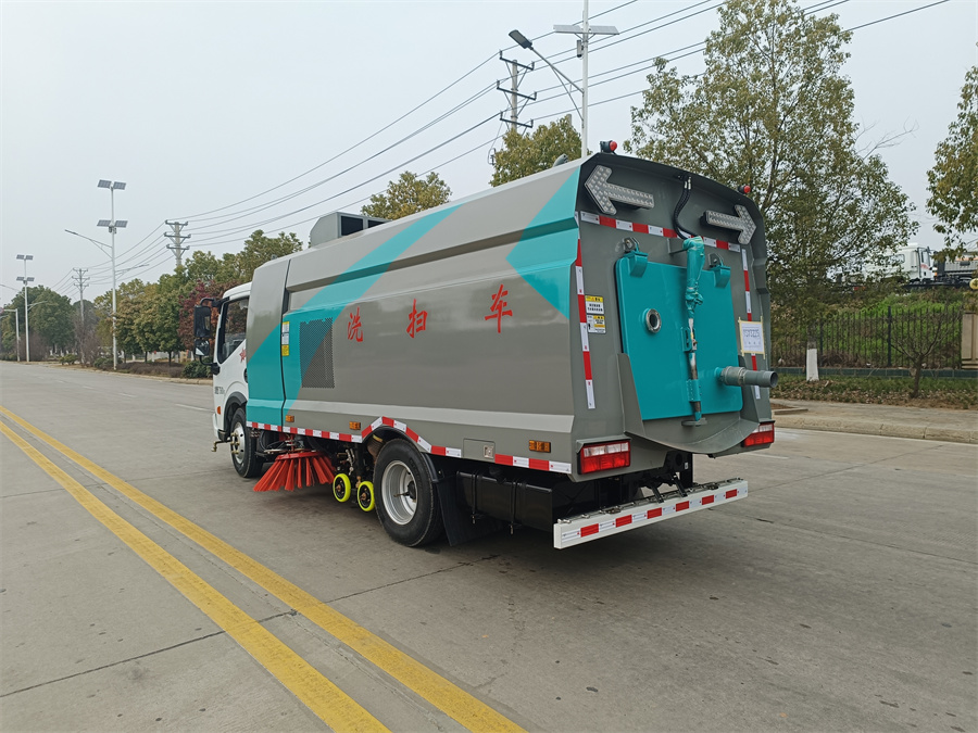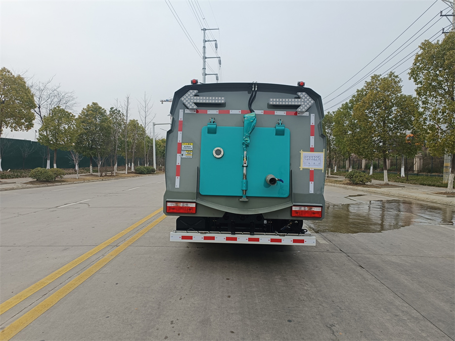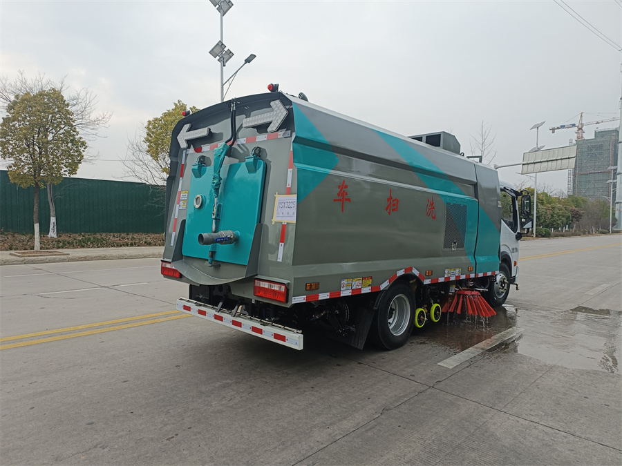 箱體材質(zhì)為Q235碳鋼,箱體做電泳處理?蛇x不銹鋼水箱,垃圾箱水箱,容積3方,塵箱容積3方。帶2個中置掃 盤,玉柴102馬力副發(fā)動機;三洋馬達;高壓水泵(前沖/側(cè)噴/中噴/沖洗水槍/垃圾箱 自潔裝置);控制器;控制箱;PLC一鍵控制;尾部LED箭頭燈;垃圾箱、水箱均帶防 溢低水位報警裝置;倒車及洗掃狀態(tài)室內(nèi)監(jiān)視器。20m高壓沖洗卷盤。,洗掃車帶灑水功能,可以沖洗路面