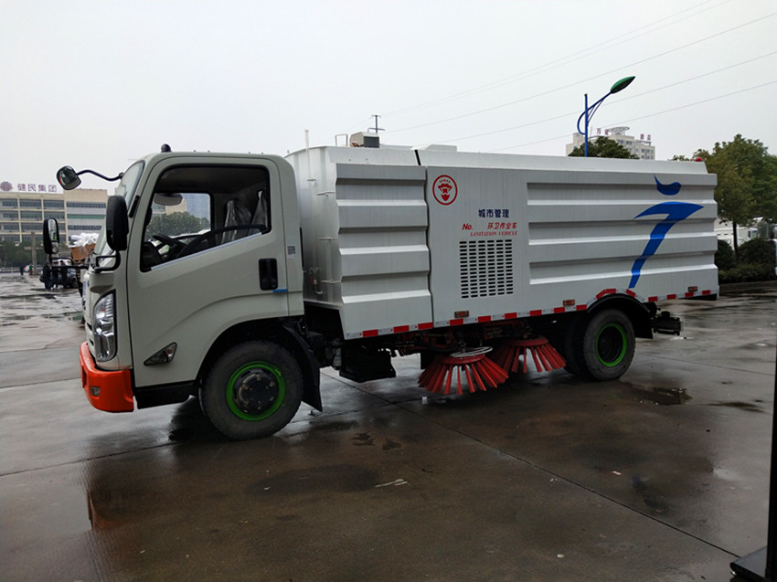 1、掃路車采用吸掃結(jié)合的方式收集垃圾,濕式除塵、電液控制,液壓傾翻卸料的作業(yè)方式對路面進(jìn)行清掃作業(yè)。