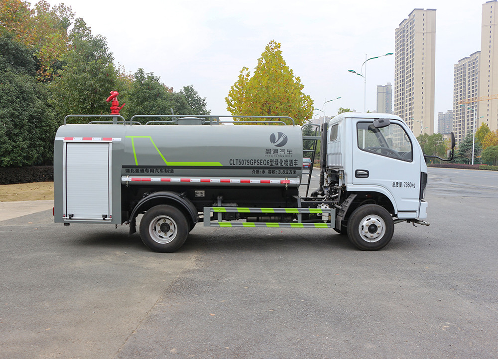 東風5方灑水車底盤配置: 發(fā)動機云內(nèi) 126 馬力(四缸),萬里揚 5 檔變速箱,2T 前橋, 3.5T 后橋,7.00R16 鋼絲胎,軸距 3308,斷氣剎,ABS,電動玻璃, 中控鎖。2.上裝配置: 1、罐體約為 5 方, 2、邊燈帶電,罐體尾部上方標配 2 個紅色示寬燈, 3、標配前噴為鴨嘴直沖,標配后沖,用戶可根據(jù)自己的需求,來調(diào) 整對沖位置。 4、沖孔平臺(承載能力加強),炮筒后蓋為定制型螺栓卡扣, 5、前噴、后沖、后灑、側(cè)噴,綠化高炮開關(guān)球閥均采用 50 大通經(jīng) 不銹鋼球閥, 6、新式軸承式水炮,更加耐用, 7、40-50 型水泵, 8、防腐法蘭墊片, 9、鋁制后灑,不易炸開 10、罐體自動焊(美國林肯焊機及電源),拼板自動焊接,封頭環(huán) 縫焊接,無氣孔,焊縫美觀。 11、側(cè)護網(wǎng)、后保險杠、均為螺栓連接,方便拆卸,維修方便。 12、塑料擋泥板,替代鐵擋泥板,更加輕便,用螺栓連接,方便拆 卸。 13、前部、后部主管連接處為 6 孔圓法蘭,不易沖墊